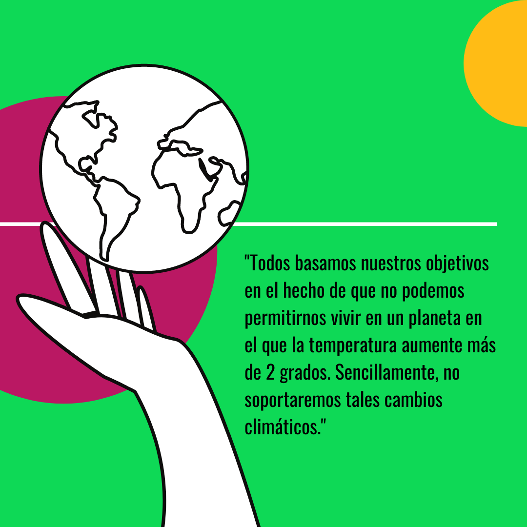 Así que en este caso, no hay espacio para el greenwashing, para el retroceso, para el marketing verde o las mentiras. Todos basamos nuestros objetivos en el hecho de que no podemos permitirnos vivir en un planeta en el que la temperatura aumente más de 2 grados. Sencillamente, no soportaremos tales cambios climáticos. Nosotros, los habitantes del planeta Tierra, que va más allá de la raza humana.