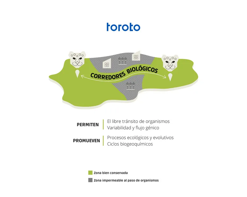 There are many ways to promote the establishment and care of biological corridors; at Toroto, we believe that ecological restoration hand in hand with nature-based solutions restores to ecosystems the functional capacities necessary to sustain and harbor life, provide ecosystem services, and also allow the passage of species. Although we may be thinking of biological corridors as areas perfectly delimited by a fence or mesh, we must understand that on a landscape scale, any territory permeable to as many organisms as possible can serve as a biological corridor. Could a reforestation between two conservation areas with native species be so? Although the scope and size are an important characteristic to take into account to make it as inclusive as possible for all organisms, as long as the area has territorial coherence and allows safe transit, it can act as a biological corridor; Here lies the importance of understanding nature conservation in an integral, and not atomized, way. Reforestation with native species is more than just reforestation; it promotes water recharge, soil formation, carbon sequestration, biodiversity and can also act as a connector between islands, thus addressing one of the most urgent situations of our time.