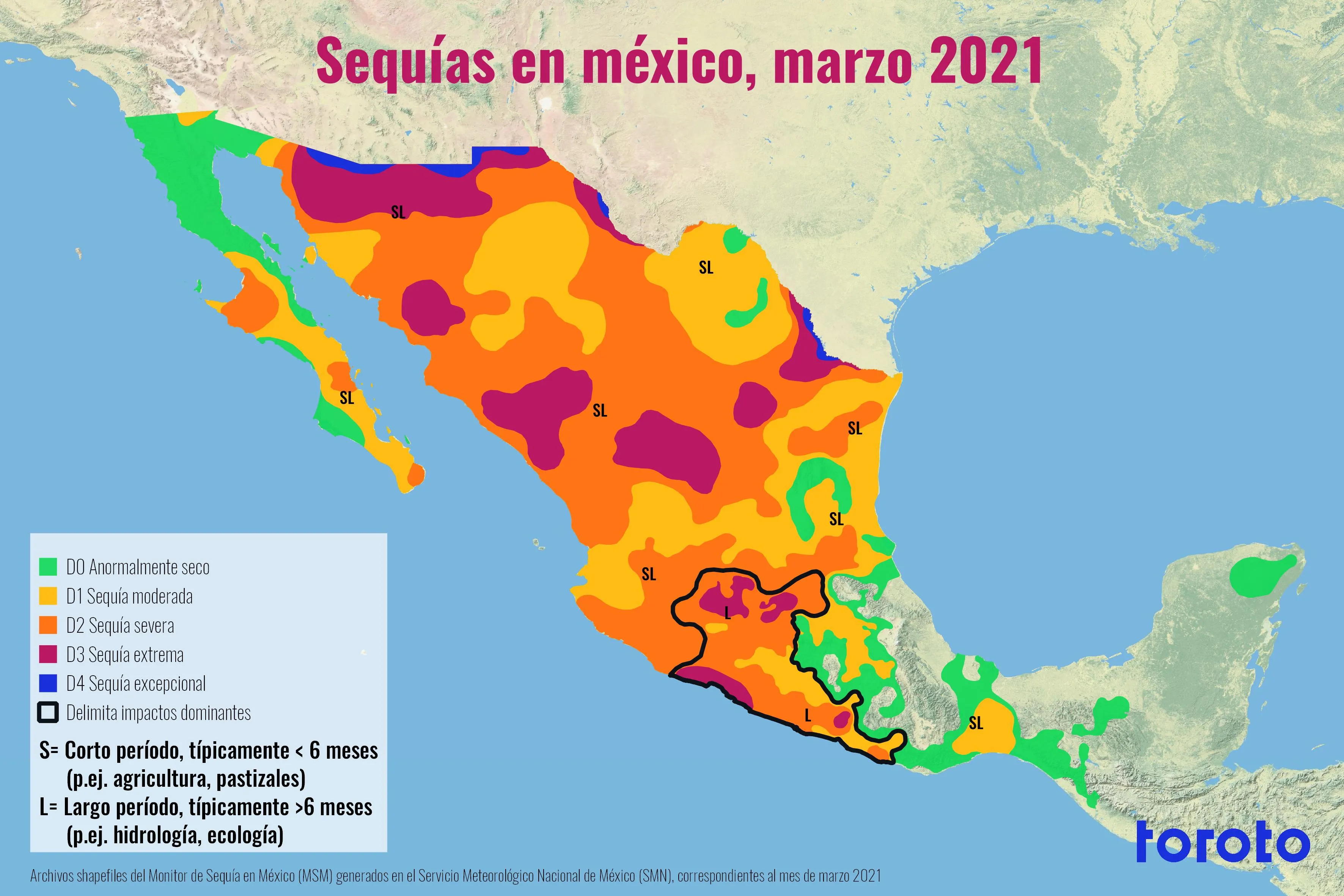 -The states most at risk due to extreme drought, with the highest rainfall deficit, are those in the north of the country, determining their percentage of land area (CONAGUA):
